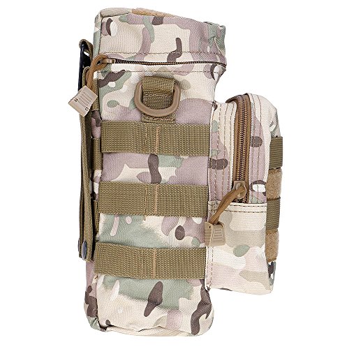 -. Feature : 2 pouches design, the main pouch can put big sport water bottle, Magic stick pannel on the top, the second pouch can put some small things and also with magic stick which can put patch easily / Made by high density nylon, scratch resistant, and not easy to fade after long-term use, and wear resistance higher 10 times than conventional polyester fabric tension / Able to attached to webbing vest, bag, duty belt or backpack. Perfect for outdoor war game activities. / Material: high quality 1000D Nylon material / Package included: 1 x Insulated Water Bottle Pouch(water bottle not included)