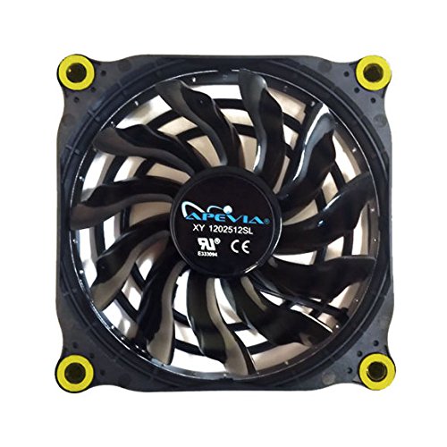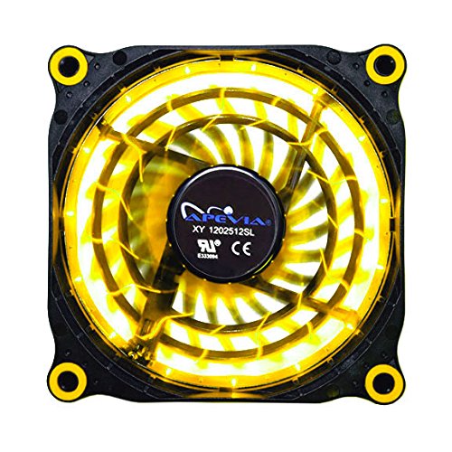 APEVIA 12L-DYL 120mm Silent Black Case Fan with 15 x Yellow LEDs & 8 x Anti-Vibration Rubber Pads - Best Value