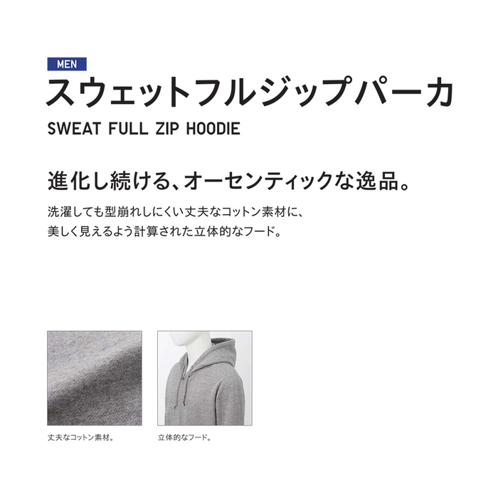 Uniqlo 유니클로 MEN 스웨트 풀 ZIP 파카(긴 소매) - 180710