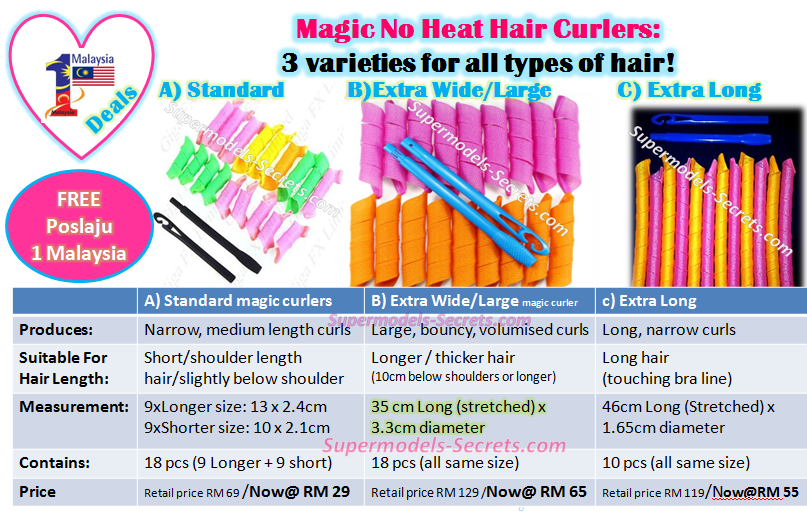 (Standard size is for Shoulder length or shorter – pls browse at Extra large or Extra long for longer hair or larger curls)