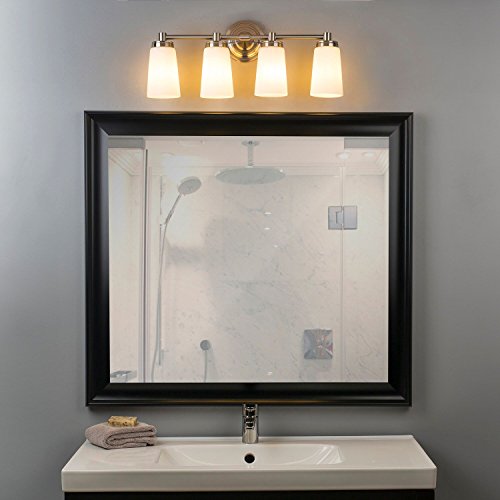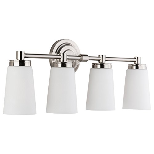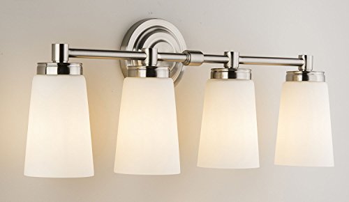 Sheffield Vanity Wall Sconce Four-Light Fixture Brushed Nickel with Frosted Glass Shade. Hardwired, UL Listed Linea di Liara LL-WL260-4-BN