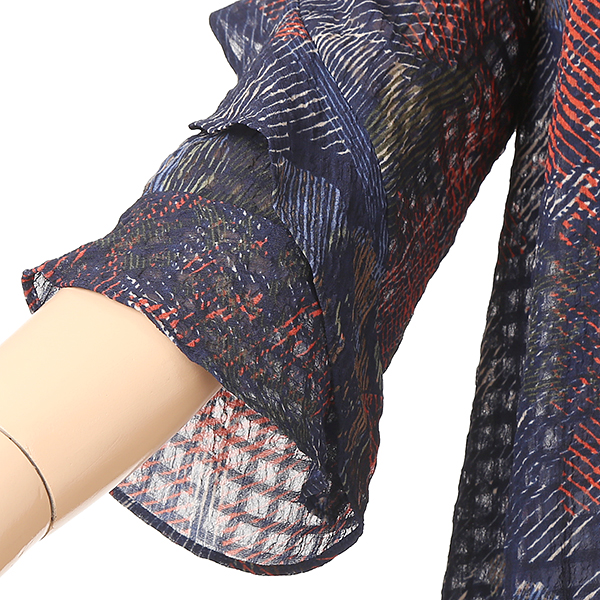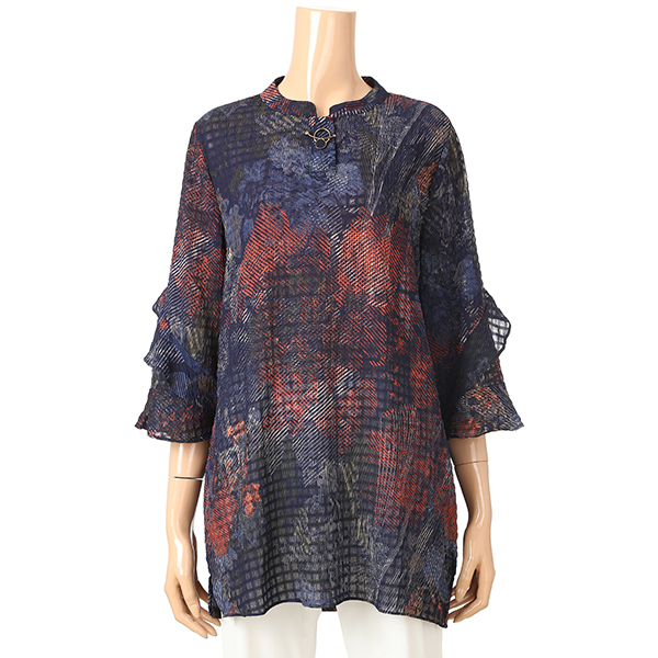 고급스러운 패턴과 블라우스 변형으로 뒤판에 다이마루를 배색 처리하여 활동성이 좋으며 착장시 체형커버에 효과적인 아이템입니다.