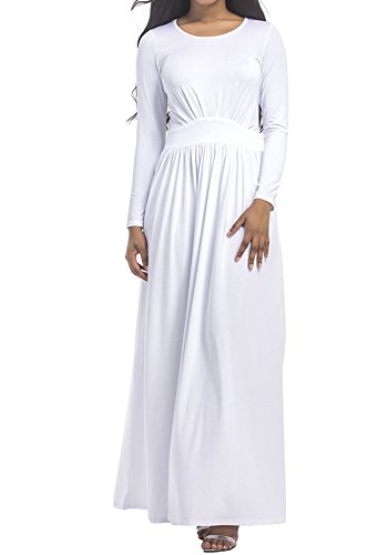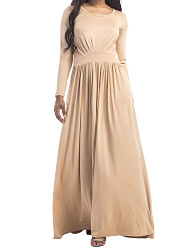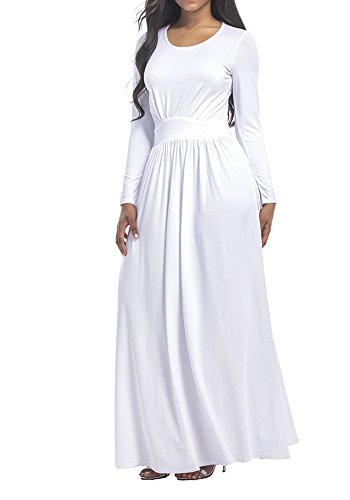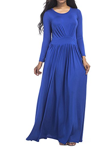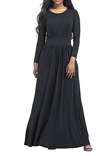 Soft and Comfy, Stretchy Loose Maxi Dress, Ankle Length, Elastic, Long Sleeve, Round Neck