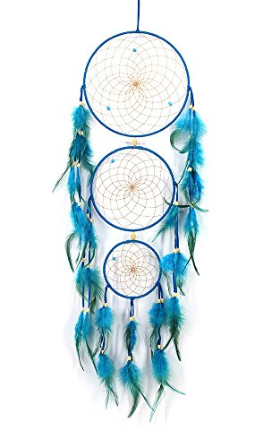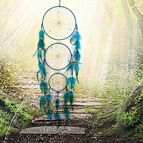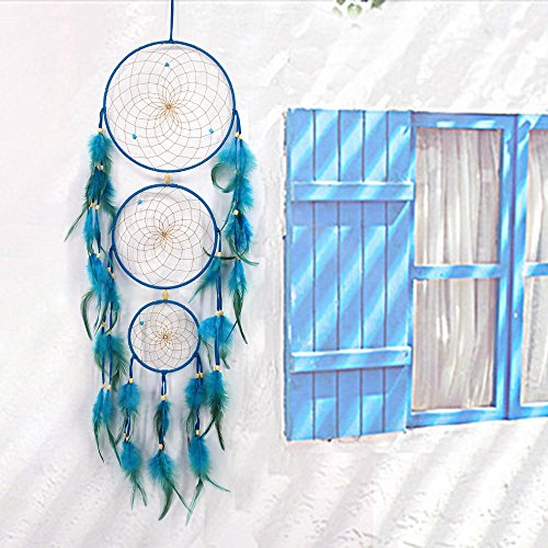 Three Rings Handmade Net Wall Hanging Ornament Decorations for Kids Girls Home Bedroom Car, 30" Long (Turquoise)