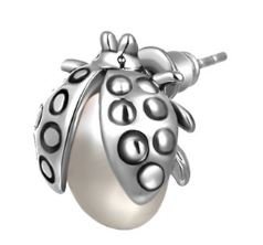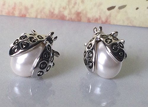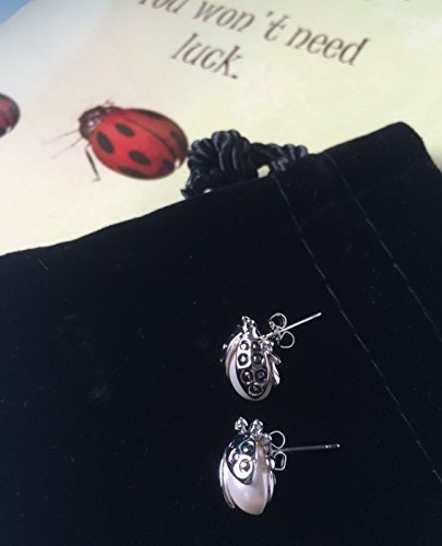 Smiling Wisdom - Ladybug Good Luck Greeting Card Gift Set for Her - I Believe in You - Freshwater Pearl Lapel Pins or Use as Stud Earrings - Silver, Pearl + FREE GIFT