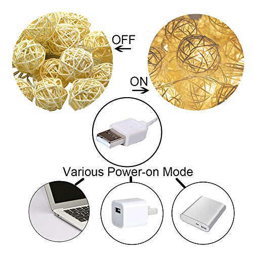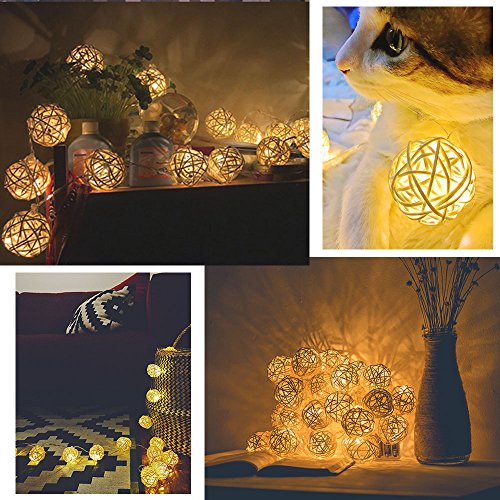 - *Excellent Performance: The length of string lights is 10 Feet with 20 rattan balls. The gap between each ball is 5 Inches.