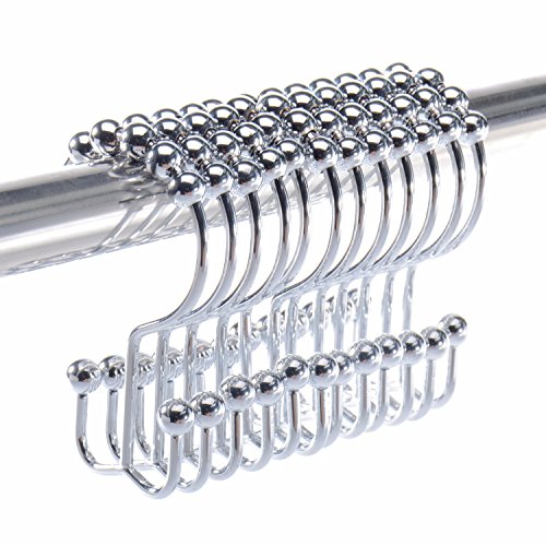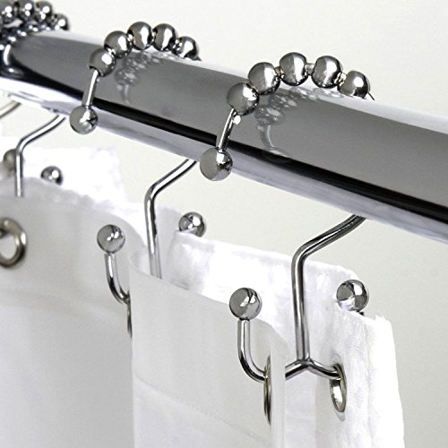 Shower Curtain Hooks Rings - Double Glide Roller, Stainless Steel, Polished Chrome, Set of 12 Rings (Chrome)