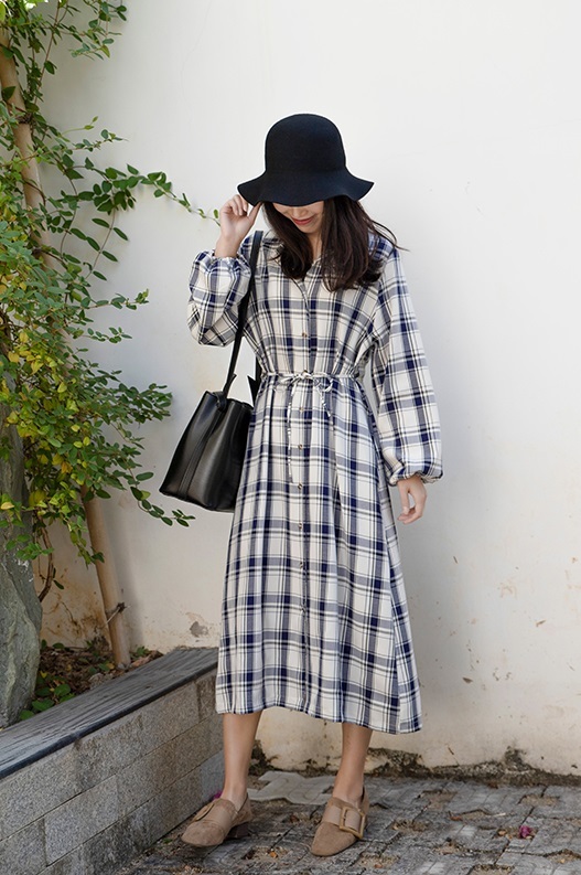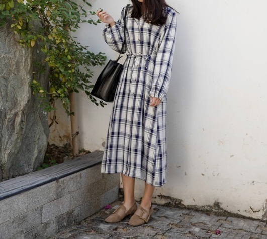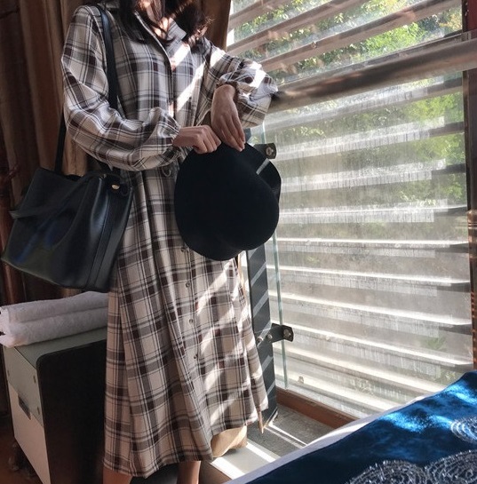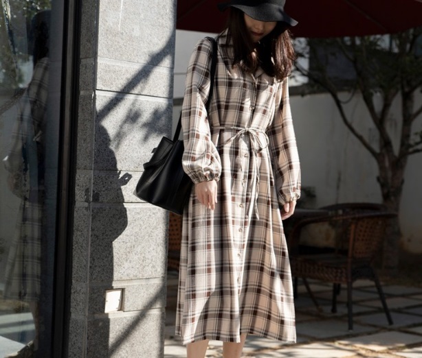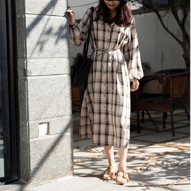 シックな色合いのチェック柄で大人っぽく着こなせる1枚着ワンピースです◎
