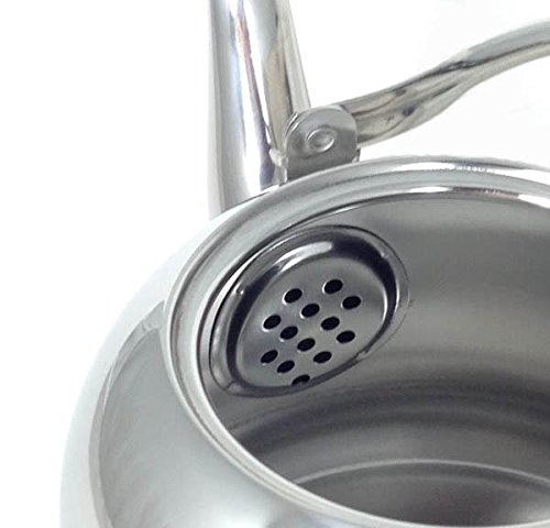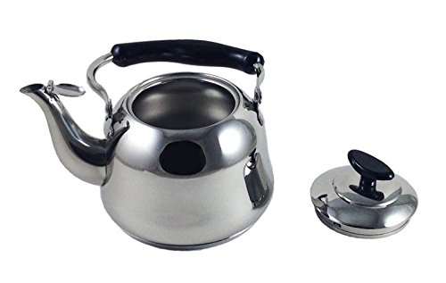 Alpine Cuisine's capsule base teakettle teapot fashions a contemporary-classic striking style and lends with a variety of appreciate features. The kettle is constructed of quality heavy-gauge tempered stainless steel. The kettle's side resting ergonomic cool touch handle provides comfortable handling and provides a steady controlled pour with its contour gooseneck spout. Helpful features during boiling includes a spray preventing spout lid, harmonic whistle from the top lid and compatibility with electric, gas and induction heat sources.Feature