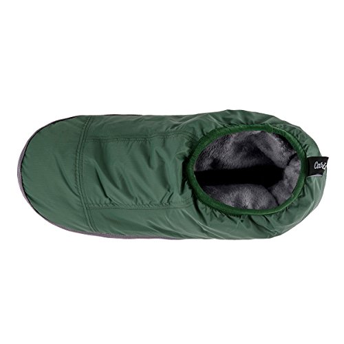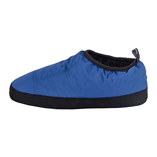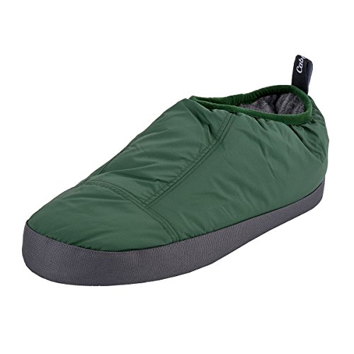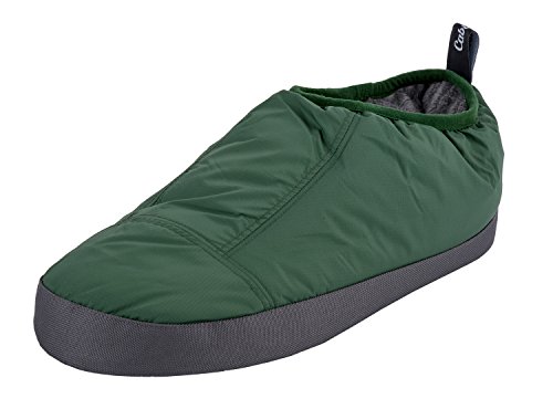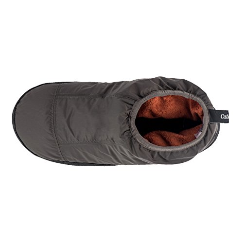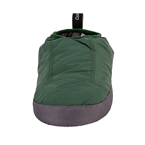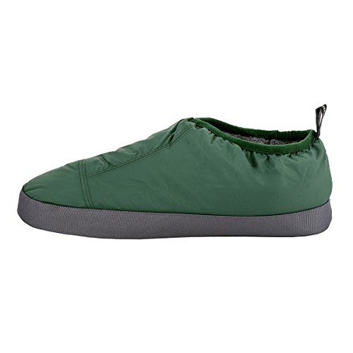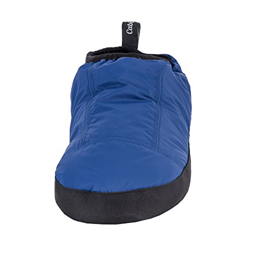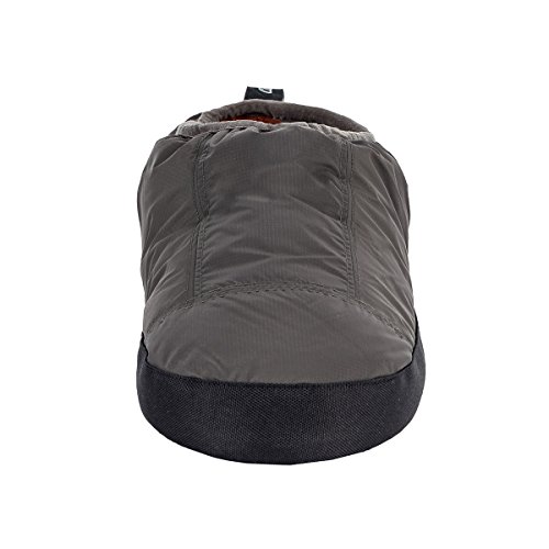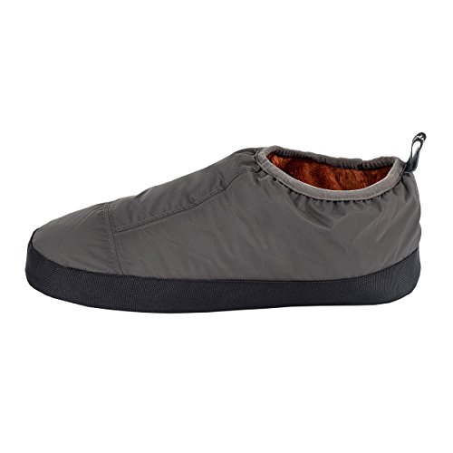 Binding : Apparel Product Description These Cabiniste 100% duck feather and down insulated slippers are the shorter version of our popular Down Bootie. Designed to offer comfort and warmth in camp, at the cabin or just around the home, Cabiniste Down Mocassins are lined with soft, luxuriant polyester fleece. They are insulated with 100% RDS certified duck feather (60%) and down (40%) for maximum warmth and minimal weight. They are easy to pull on, and the elastic cuff helps them stay on your foot. Underfoot, the 3/4" foam midsole provides cushion. The sole is nylon with polyester beads to add friction (note, the soles are designed to be worn indoors). A perfect gift for friends or family, these slippers are incredibly warm, compactible and light weight! 0