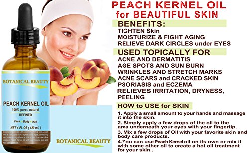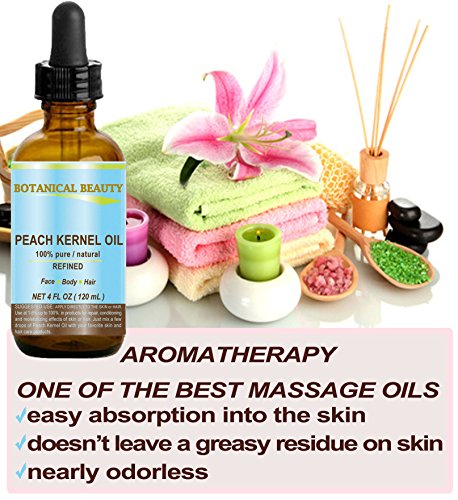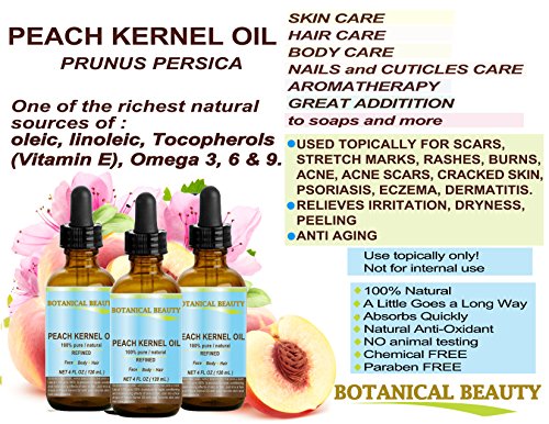 -. Title : PEACH KERNEL OIL. 100% Pure / Natural / Undiluted / Refined Cold Pressed Carrier Oil for Skin, Hair, Massage and Nail Care. 4 Fl. oz-120 ml.