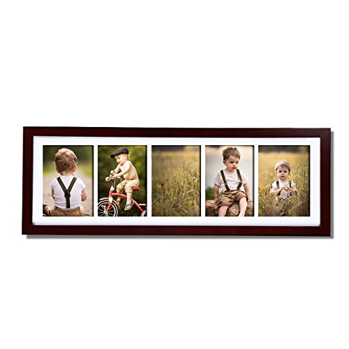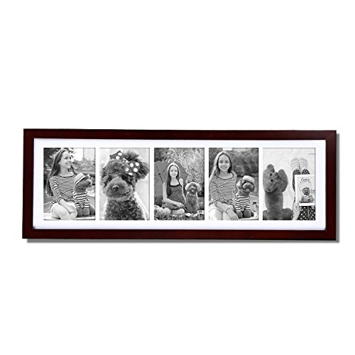 Joveco 5 Divided Openings Decorative Wood Wall Hanging Picture Photo Frame (Walnut)