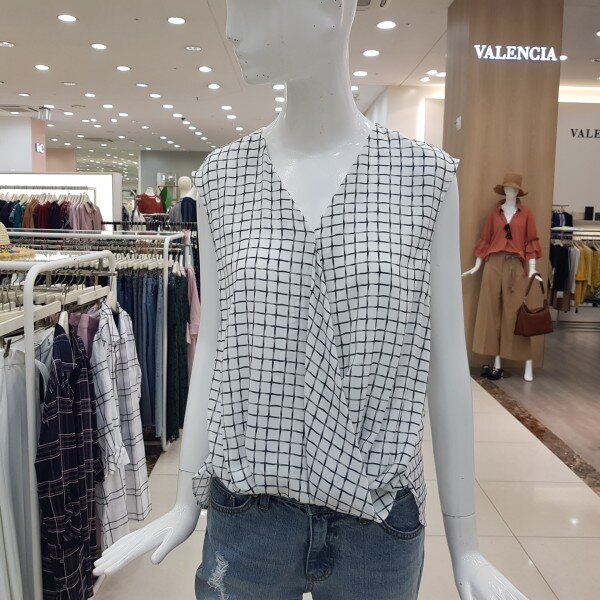 브이넥 패턴블라우스로 앞선이넣어입은듯한 느낌으로입을수있는 블라우스
