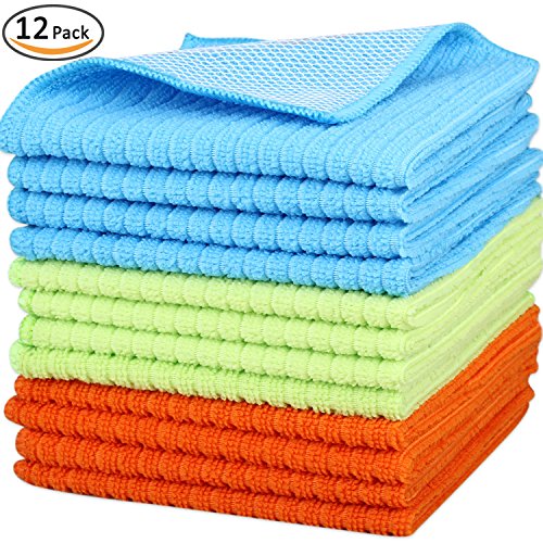 -. Title : Kleanner SUPER PREMIUM Microfiber Kitchen Dish Cloth Towel With Mesh Scrubber,Size 12 x 12 Inch,Set of 12 Packs