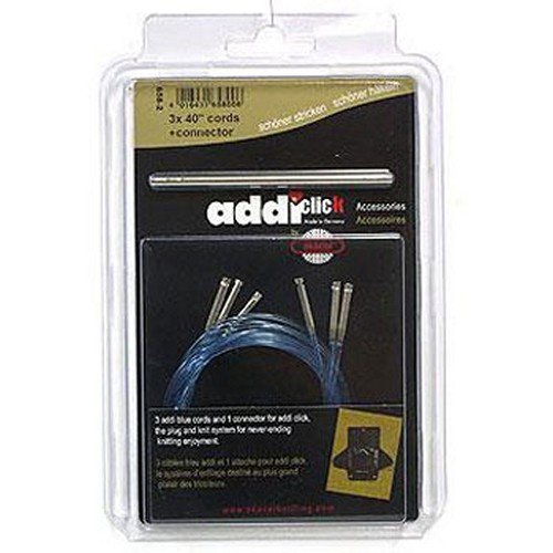 This addi Click extension cord pack includes multiple replacement cords in lenghts of 60 cm, 80 cm, 100 cm (approx. US 24, 32", 40"). This extra cord/extension pack features three cords and one extra connector. The cord sizes will allow one to create 24", 32" and 40" Clicks when Turbo or Natura tips are attached (Lace tips, being shorter in length, will yield a shorter Click needle). Sizes are listed in approximate US sizes -AND- exact metric sizes for your convenience. All addi knitting needles are manufactured to exact metric sizes. Please Note: Every addi product purchased from an Authorized addi Dealer comes with a Lifetime Warranty from any manufacturer's defect.Feature