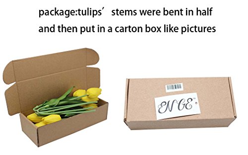 Packge: 10 heads in one carton with ENGE logo;Tulips stem were bent in half and then put in a box like packing pictures showed.
