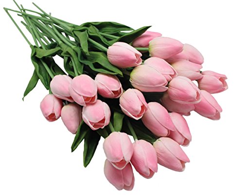 Tulips are made of Polyurethane(PU),this material is beautiful , real touch&looks ,and easy to clean.Best viewing period in 90 days ,if you want to use them after many months ,please keep them in carton.