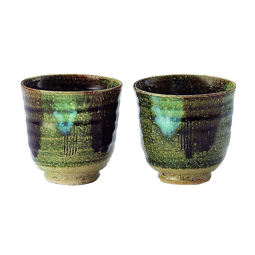 清風の匠、「桂山窯」和田和文の手造りのカップです。ギフトにもオススメです。 生産国:日本 素材・材質:陶器 商品サイズ:約φ8.5×8.5cm 仕様:容量:250cc木箱入食洗機使用可電子レンジ使用不可 セット内容:カップ×2 ※サプライヤー直送品 ご注文後5~6営業日後の出荷となります【商品名】アワサカ 日本製 清風 青均窯織部 カップペア(木箱入) 7-1729