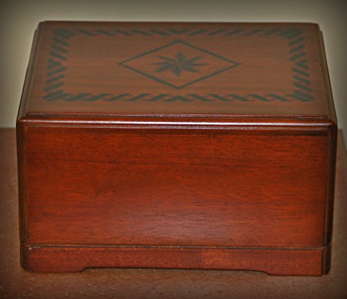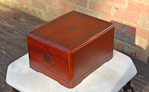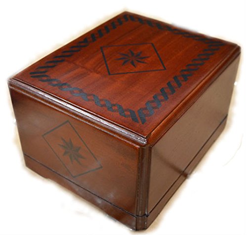 Studio : Urnporium Publisher : Urnporium Binding : Lawn Patio Product Description Adult cremation urn made from mahogany wood. Size:10"x8"x5.5", includes velvet urn bag, capacity: 225 cubic inches, interior of urn has a velvet liner, Finish: faux inlay pattern on mahogany wood, net weight 3.5 lbs, our wooden urns are well made and offer a nice tribute for a loved one. 0