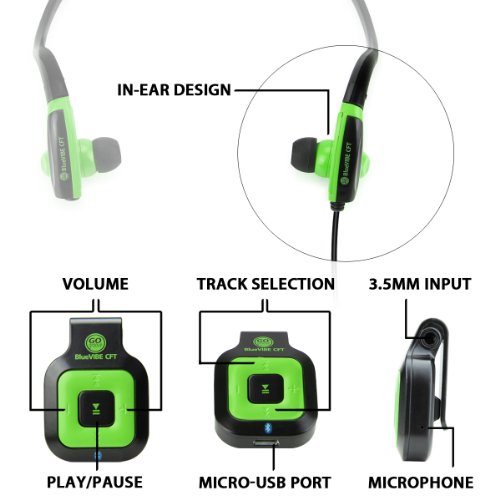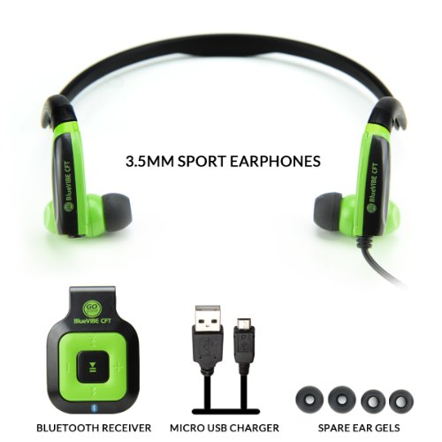 -. Feature : The BlueVIBE CFT Bluetooth Receiver and Sports Earphones allow you to stream wireless audio from any Bluetooth-enabled device. Works with Samsung Galaxy S6 Edge , LG G4 , Motorola DROID Turbo and More / The ergonomic earbud fit and handy clip-on Bluetooth receiver provides you with comfort and durability no matter how active you are. It's perfect for Running, Marathons, Workouts, Crossfit and More / Onboard controls let you play, pause, skip tracks and control music volume directly from the headset. The CFT also features a built-in microphone, so you can take calls while you're on the go. / Backed by the GOgroove 3-Year Manufacturer's Warranty / TECH SPECS - Bluetooth Receiver Dimensions: 1.5 x 1 x .5 inches - Weight: .42 ounces / Earphones Dimensions: 6 x 5 x 1.75 inches - Weight: .82 ounces / Earphones Cable Length: 45 inches