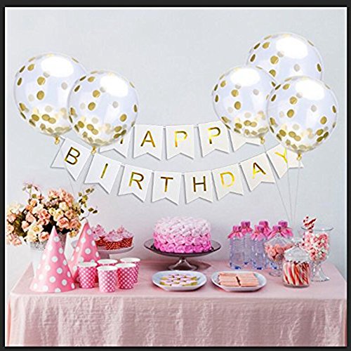 Note Due to the gold confetti is heavier than helium, the gold confetti moves in the direction of gravity. So before you inflate the balloon, spray a little water into the balloon or blow a little water through your mouth that the moisture will help the gold confetti stick to the balloon. Beyond that, rubbing the outer side of the balloon with a dry towel will also help the gold confetti stick to the balloon.