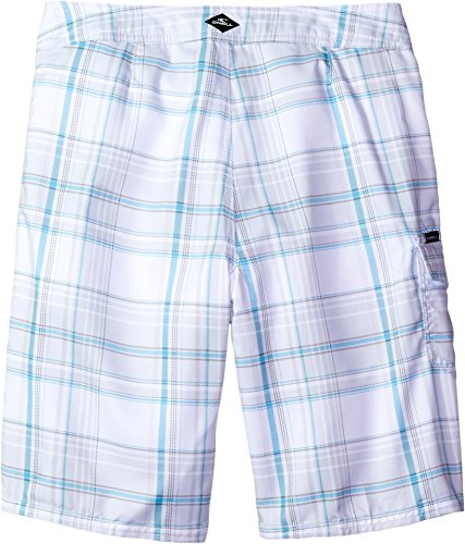 The O'Neill boys' Santa cruz plaid board short features a 17 inch
