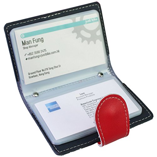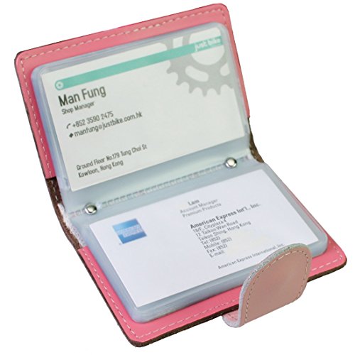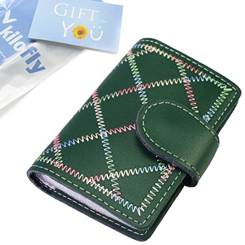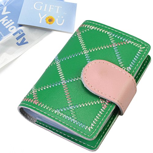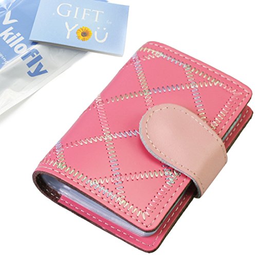 - Feature : Made of soft, durable leather / Book style with metal snap button closure / 26 see-through card pockets - Provides ample room to store your credit cards, business cards, and more / Can store 20 credit cards or 52 business cards of standard size and thickness / Size: 10.5 x 7.5 x 2.0 cm / 4.2 x 3.0 x 0.8 inch (L x W x H); AND comes with a kilofly mini Gift-for-You Card - Ideal for dropping a few words for that special someone