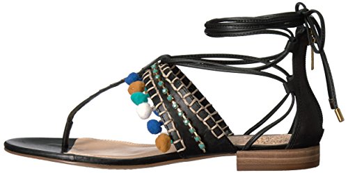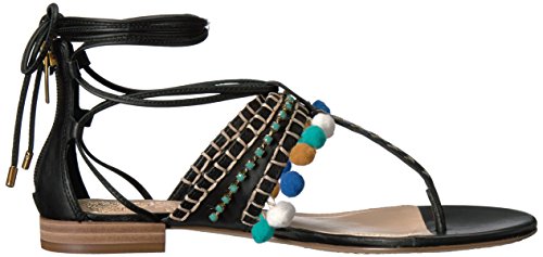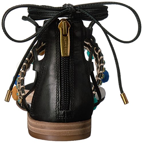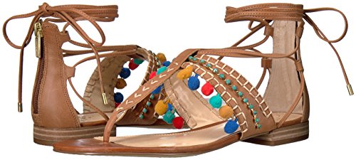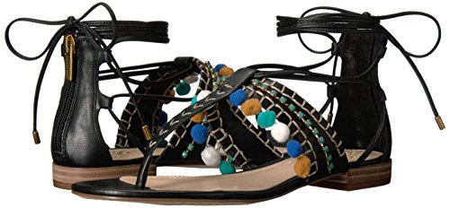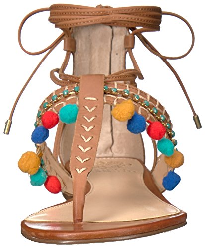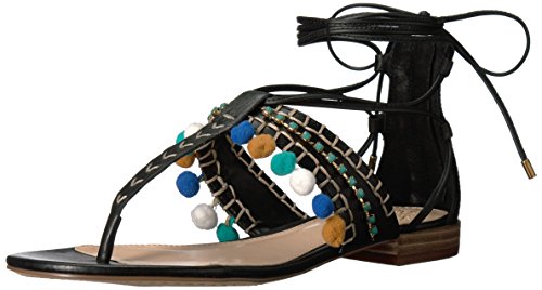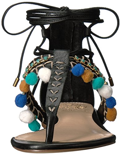 Product DescriptionFlat sandal with ankle wrap, pom pom and stone details0