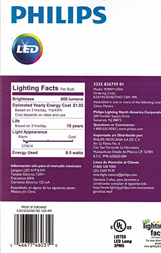 Philips Everyday 8.5-Watt LED is equivalent to a standard 60W incandescent and designed to deliver everyday value and effective, consistent light. Ideal for any room in your home, such as bedrooms and living rooms, it has a lifetime of 10 years (based on 3 hours/day). The Philips 8.5-Watt LED is an affordable replacement providing significant energy savings, while lighting your home with warm, soft white light.Feature