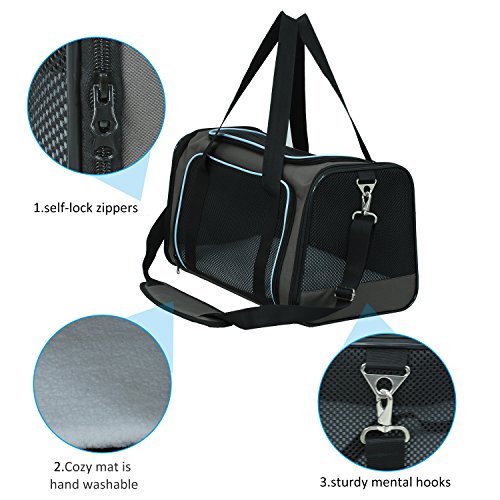 Studio : X-ZONE PET Publisher : X-ZONE PET Binding : Misc. Product Description Product description Size:18.5"L x 11"W x 11"H, suitable for pet up to 18 lbs Folding size: 18.9"L x 11"W x1.96"H. Net weight: just 2.1 lbs Designs and Functions: 1. It is made of durable Oxford Fabric and Mesh which can effectively prevent tear from claws. 2.It comes with auto-lock zipper sliders and a tether which will prevent your pets from escape. 3.It is also provides a belt loop on side panel for functioning as a dual seatbelt/luggage strap for securetransport. 4. It comes with a Removable Fleece Travel Bed made by cozy fleece and durable oxford fabric. 5. Mesh ventilation on sides and top not only provide adequate airflow, but also easy viewing--perfect for your pet to look out and for you to check on your pet. Warranty X-ZONE PET adhere to Amazon Return Policy. Attention: Please measure your pet before buying. Safety Info 1. Pets should not be left unattended in this carrier. 2. When traveling in a car, be sure to secure the carrier to the seat of car by seatbelt only. 3.Please contact with airline before flying with your pet to avoid needless trouble and affect your trip.