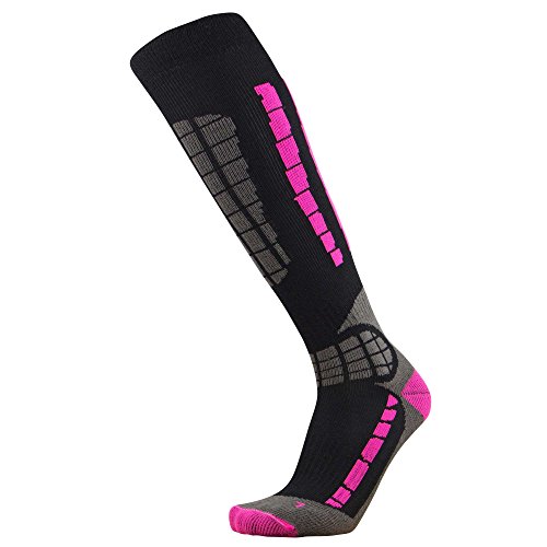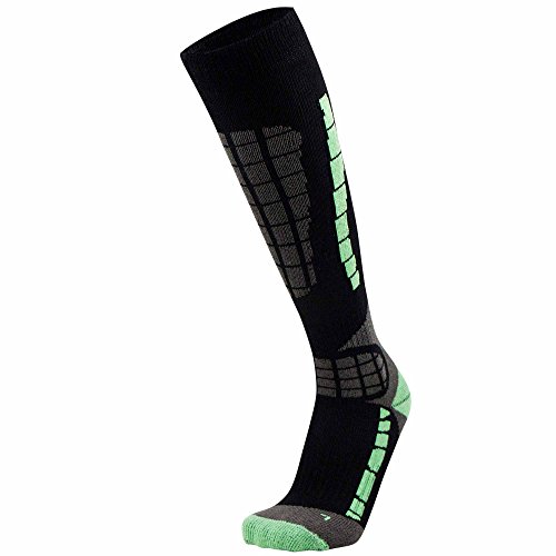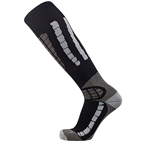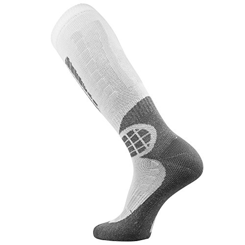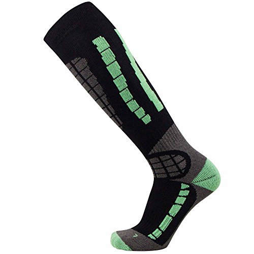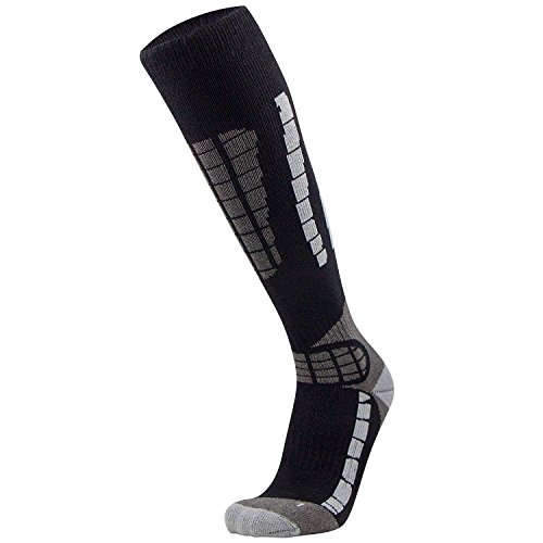 Studio : Pure Athlete Publisher : Pure Athlete Binding : Sports Apparel Product Description The over the calf (OTC) lightweight Pure Athlete Ski Socks utilize advanced merino wool to help keep feet warm while skiing or snowboarding. The socks are engineered to provide thermal regulating properties to keep feet warm without overheating. The ski socks are ultra-soft, to ensure there is no irritation while skiing. The anti-odor and moisture wicking properties prevent the buildup stink and perspiration. The knee high ski socks are made of 23% Merino Wool 16% Polypropylene 58% Nylon 3% Lycra Spandex.