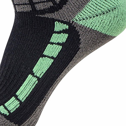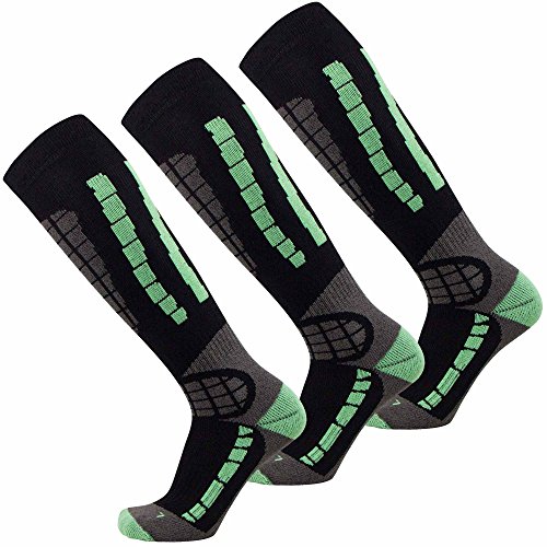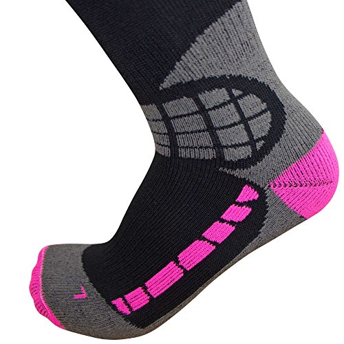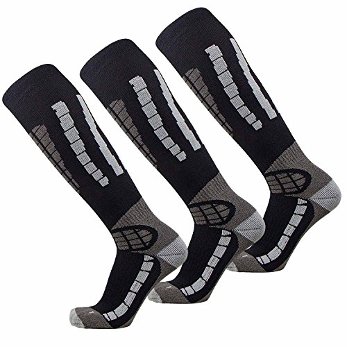 The ski / snowboard socks feature a light cuff at the top of the sock to prevent it from slipping or sliding into socks. There is also light padding in the key areas to help prevent shin bang. The ski socks can be used not only for skiing, but they are also great for all winter and outdoor activities, including ice fishing, snowshoeing, snowboarding, camping, trekking, or any cold weather activity.