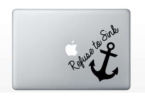 Refuse to Sink Anchor Quote (BLACK) Vinyl Decal Stickers for MacBook Laptop Car Love Forever Birds Always Relationships Feathers Peace Tough Strength Strong Strength Hope Inspiration