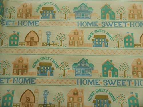 - Con-tact Shelf Liner Home Sweet Home pattern. Farm and home scenes on a pale yellow background.
