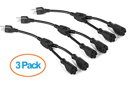 ClearMax 3 Prong Y Splitter Cable Power Extension Cord - Cable Strip Outlet Saver - Power Cord Splitter - 16AWG - UL Approved - 1 Foot (3 Pack | Black)