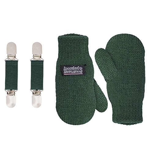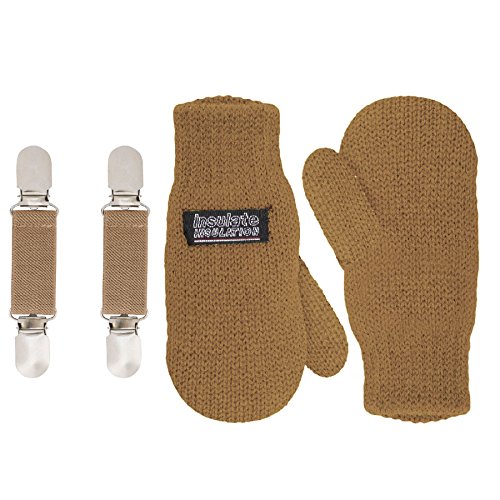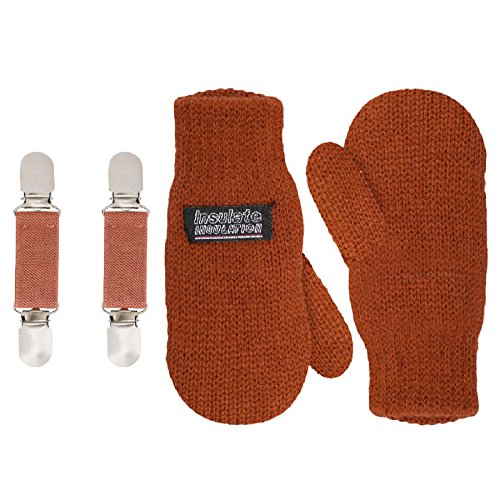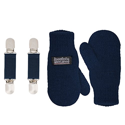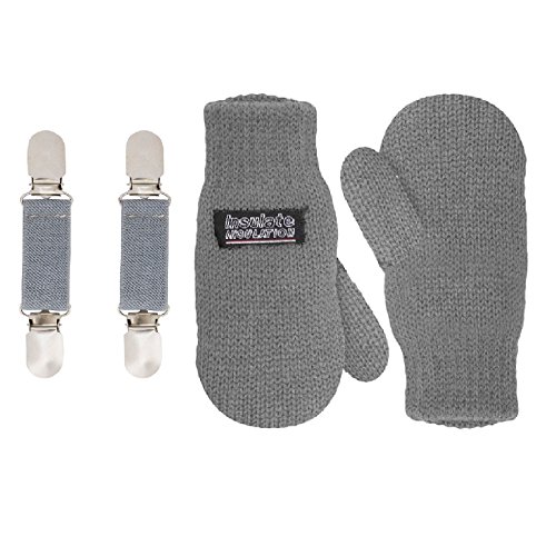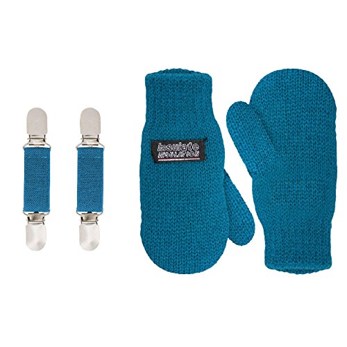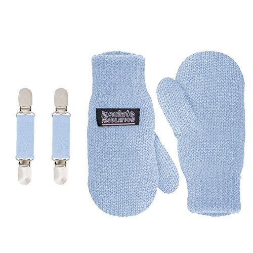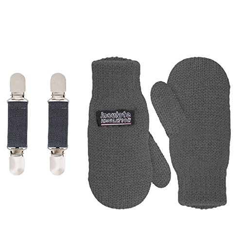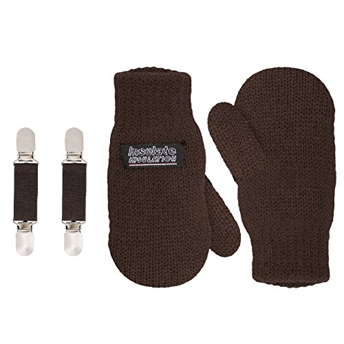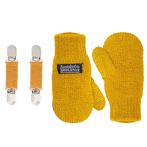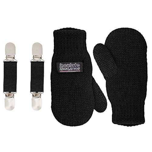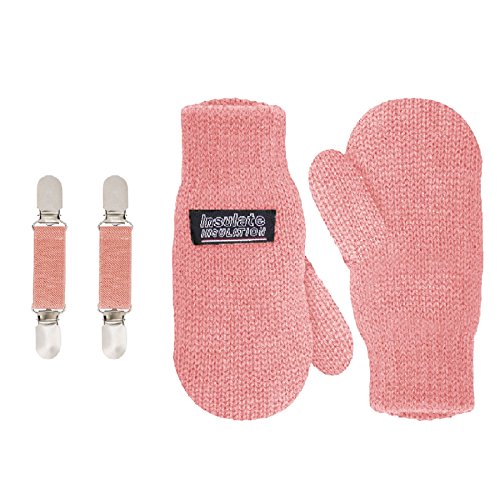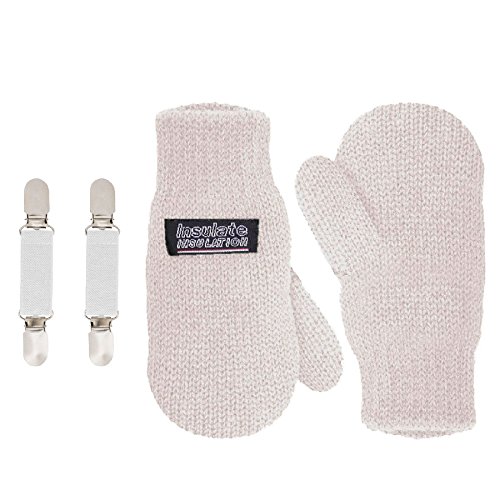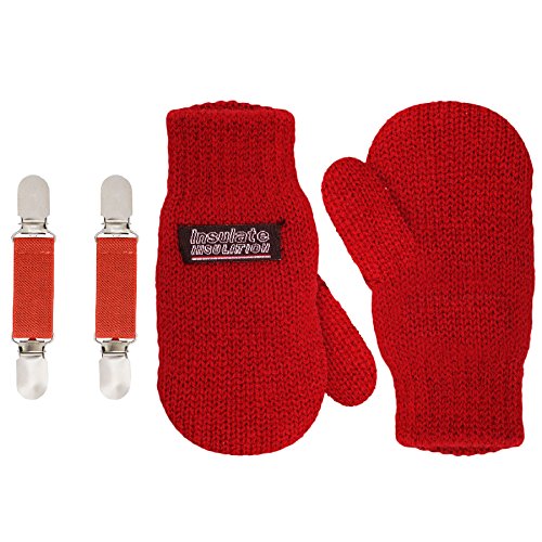 | SANREMO Unisex Kids Toddler Knitted Fleece Lined Warm Winter Mittens and Mitten Clips Set |