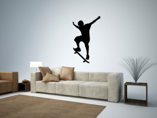 Sports Silhouette Wall Decals - Boy Skateboard 2 Silhouette - 12 inch Removable Graphic