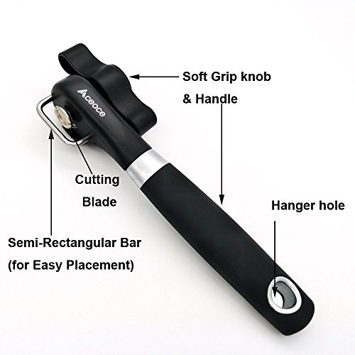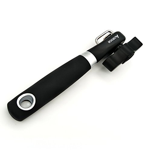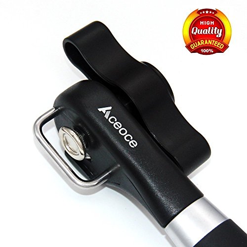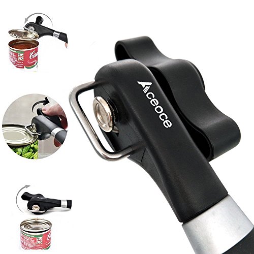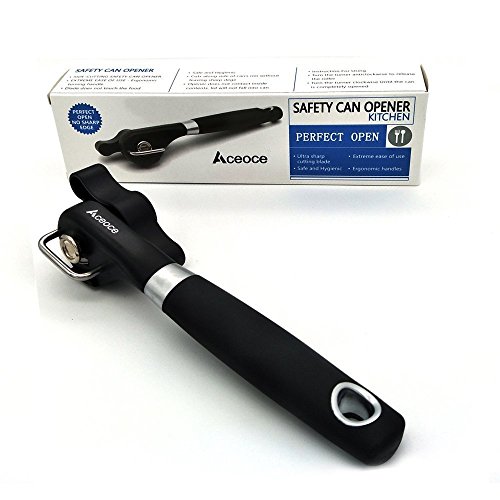 Can Opener,Aceoce Prevents Sharp Edges and Cuts - Ergonomic Soft Grips Handle Food Grade Stainless Steel Smooth Edge Can Opener Manual,Black