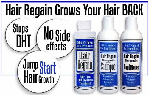 -. Binding : Misc. -. Brand : Hair Regain Natural Hair Loss System -. EAN : 0820103222402 -. Feature : DHT Blockers work to stop hair loss at the cause, and reverse it's ill effects. / Saw Palmetto and Nettles are the main ingredients in Hair Regain; both are important for hair loss prevention and reversal. / Hair Regain is all natural, with no animal ingredients and is made in the U.S.A. / Non-oily, no scent, no sulfates. / Our conditioner is made for thinning hair. It volumizes without weighing hair down -. Label : Herbal Essentials - Natural Products for Hair and Body -. Manufacturer : Herbal Essentials - Natural Products for Hair and Body -. Model : 1 -. MPN : Hai-0794 -. NumberOfItems : 50 -. PackageQuantity : 2 -. PartNumber : Hai-0794 -. ProductGroup : Beauty -. ProductTypeName : BEAUTY -. Publisher : Herbal Essentials - Natural Products for Hair and Body -. Studio : Herbal Essentials - Natural Products for Hair and Body -. Title : Regain Hair Loss Shampoo & Volumizing Conditioner Combo - 4 Month Supply -. UPC : 820103222402