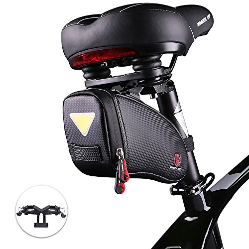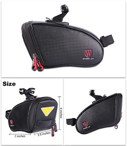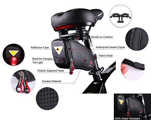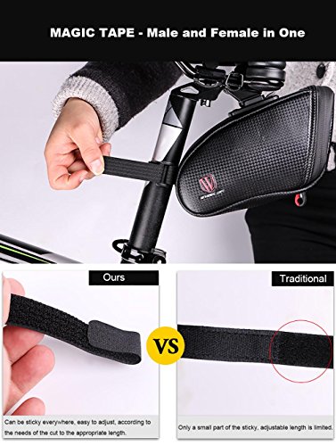 [MORE SECURE & STABLE] The saddle Bag fixed by both Buckle on Cushion and Velcro Strap, which makes it more stable during the riding.Reflective tape will protect your night rider in somehow, and also the unique little Band design enable you hang tail lights on the bag if you wish.