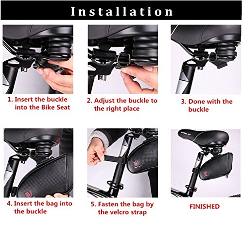 [EASY INSTALLATION & ADJUSTMENT] With the help of the Velcro strap, you can install or adjust the saddle bag easily. The way to installation is shown on the Pic.