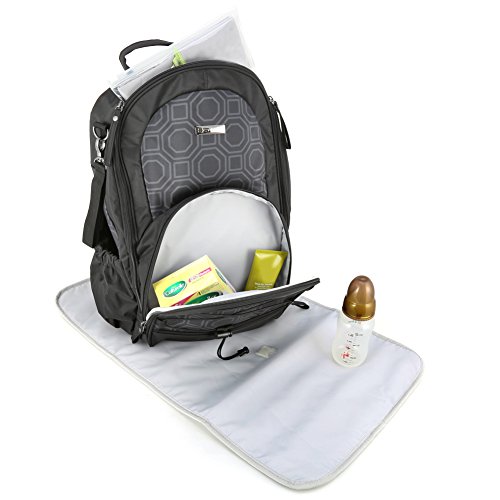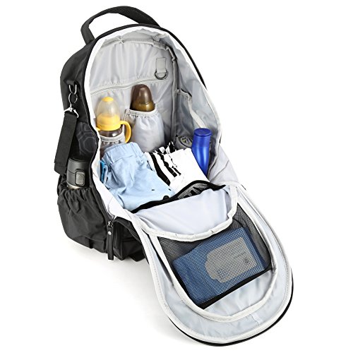 Evecase Baby Diaper Bag Travel Backpack with Stroller Straps & Changing Pad has been designed to offer a fashionable and discrete alternative to normal diaper bags with extended space and organization. The bag features ergonomic padded shoulder straps and 2 removable stroller straps for added carrying versatility. The stroller straps allow you to attach the bag to a stroller, carts, or buggy for outdoor events or walks. The large main compartment has plenty of storage and pockets including, one hot and one cold bottle insulated pockets to keep bottles ready for feeding. The perfect case to carry newborn, infant, or toddler diaper changing essentials and other necessities.