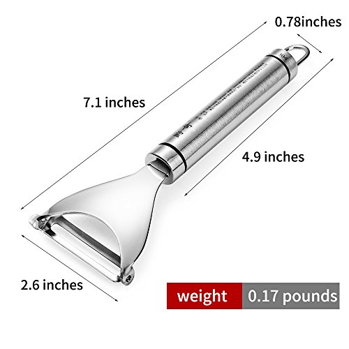Studio : oem Publisher : oem Product Description Stainless steel is a great material for many household products, primarily cookware. This material is incredibly durable, which means you won't have to replace your fruit peeler for many years to come. Compared to other metals and materials such as plastic and rubber, stainless steel holds up very well to corrosion, rust and other damaging properties. Peeling your fruit and vegetables is very important, especially when buying non-organic food. Be sure to wash all your fruits and vegetables first and then peel them. Peeling the food helps to get rid of any lingering pesticides on your produce. The stainless steel is a nonporous material so you can be certain no pesticides or other unwanted chemicals will remain on your fruit peeler after you wash it. 0