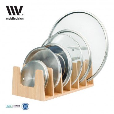 Studio : CE Supply Publisher : CE Supply Product Description Add the MobileVision Bamboo Pot Lid Holder and Organizer to your cabinets, cupboards, or countertops to help with keeping your lids, pans, baking sheets, cookbooks, and more neatly sorted and easy to get to.