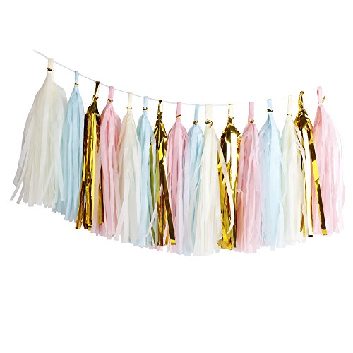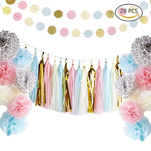 Unichart 26 PCs Pink Gold Mint Yellow Assorted Colors DIY Party Tissue Paper Tassel Garland pom pom flowers