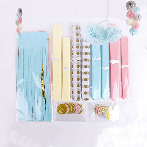 - ✿SPECIFICATIONS : Tissue paper flowers in 2 sizes: 4*12’’, 4*8’’ in 4 different colors: pink, yellow, blue and gold polka dot. Paper tassel garland in 14’’: 1 pack of 16 pcs in pink, yellow, blue and gold, each color comes with 4 pcs. 2 pcs circle paper garland,diameter is 1.6’’ in that 4 colors.