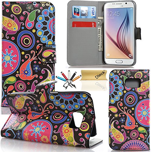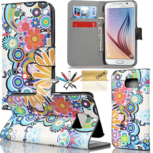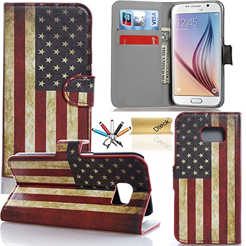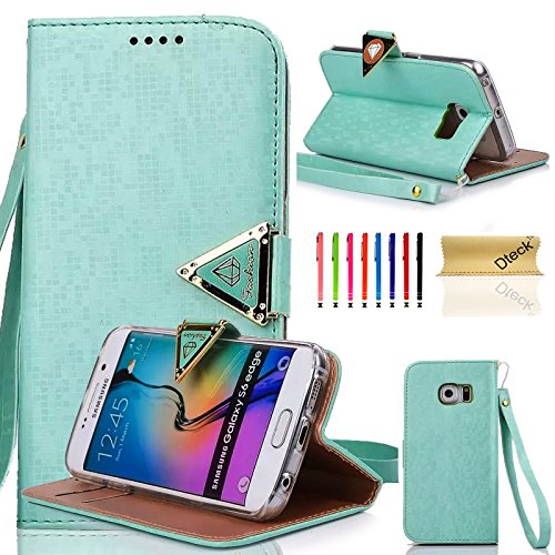 Precisely Designed Synthetic Leather Flip Wallet Case for Samsung Galaxy S6 Edge, Free with Random Color Touch Screen Stylus Pen & Dteck Brand Cleaning Cloth