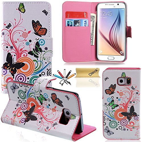S6 Edge Case,Galaxy S6 Edge Case, Dteck(TM) Fashion Colorful Luxury Pattern [Kickstand Function] Magnetic Wallet Case for Samsung Galaxy S6 Edge (2 Butterfly White)