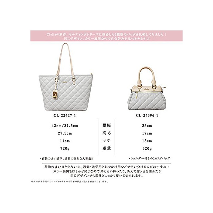 원본상품명: [クレリア] Clelia トトバッグ レディス キルティング パステル A4 大容量 マザバッグ【CL-22427-1】