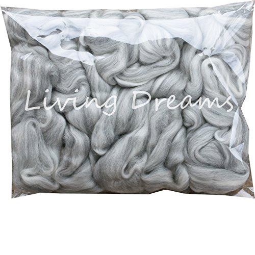 SPINNING FIBER - FELTING WOOL Super Soft Merino Combed Top Roving for Hand Spinning, Needle Felting, Wet Felting, Dryer Balls and Overdying. Natural White and Grey